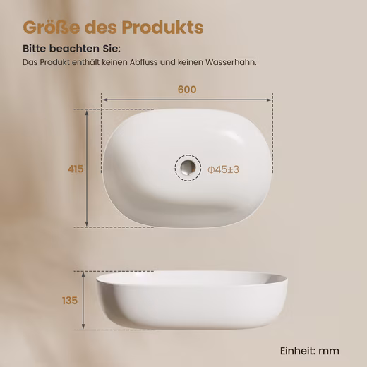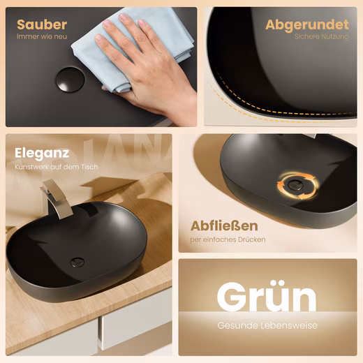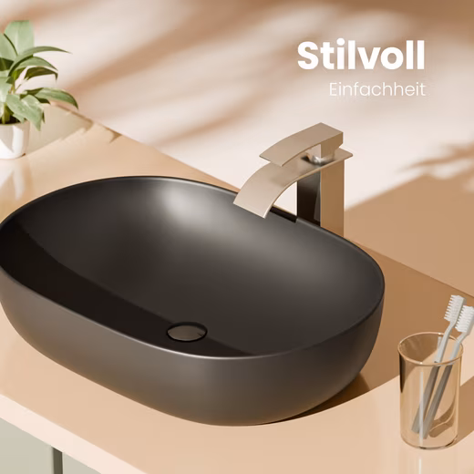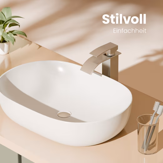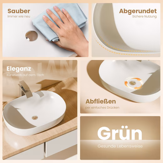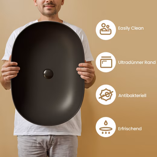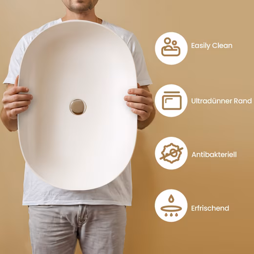 - Design & Form:Â Elegant, oval countertop washbasin with gentle curves for a timeless bathroom design and harmonious look.