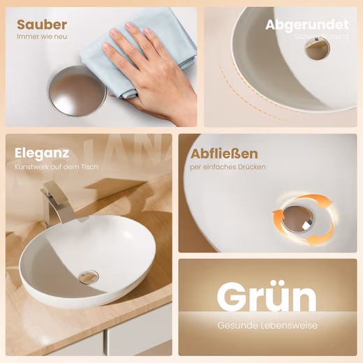 - High-quality material: Made of high-quality ceramic, the sink offers a smooth, easy-to-maintain surface that absorbs hardly any water and is resistant to corrosion. It is robust, scratch-resistant and extremely durable. The ceramic surface prevents the accumulation of limescale and stains, which makes the pool particularly easy to maintain.