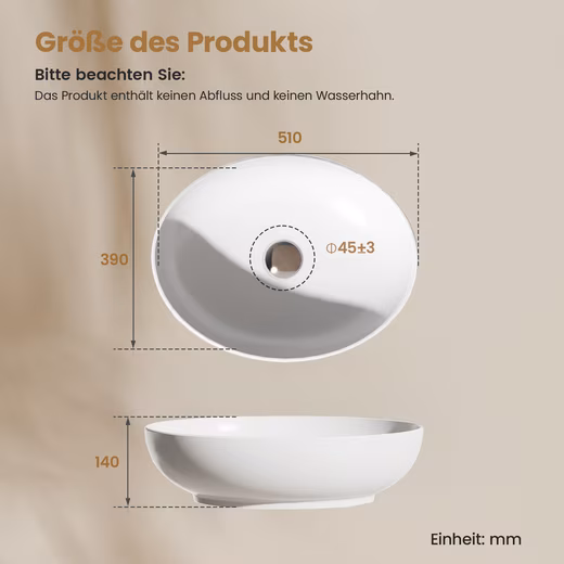 - Space-saving: The washbasin is compact and has a bright white. It comes without a waste set and drain pipes, which makes your bathroom décor cleaner and tidier.