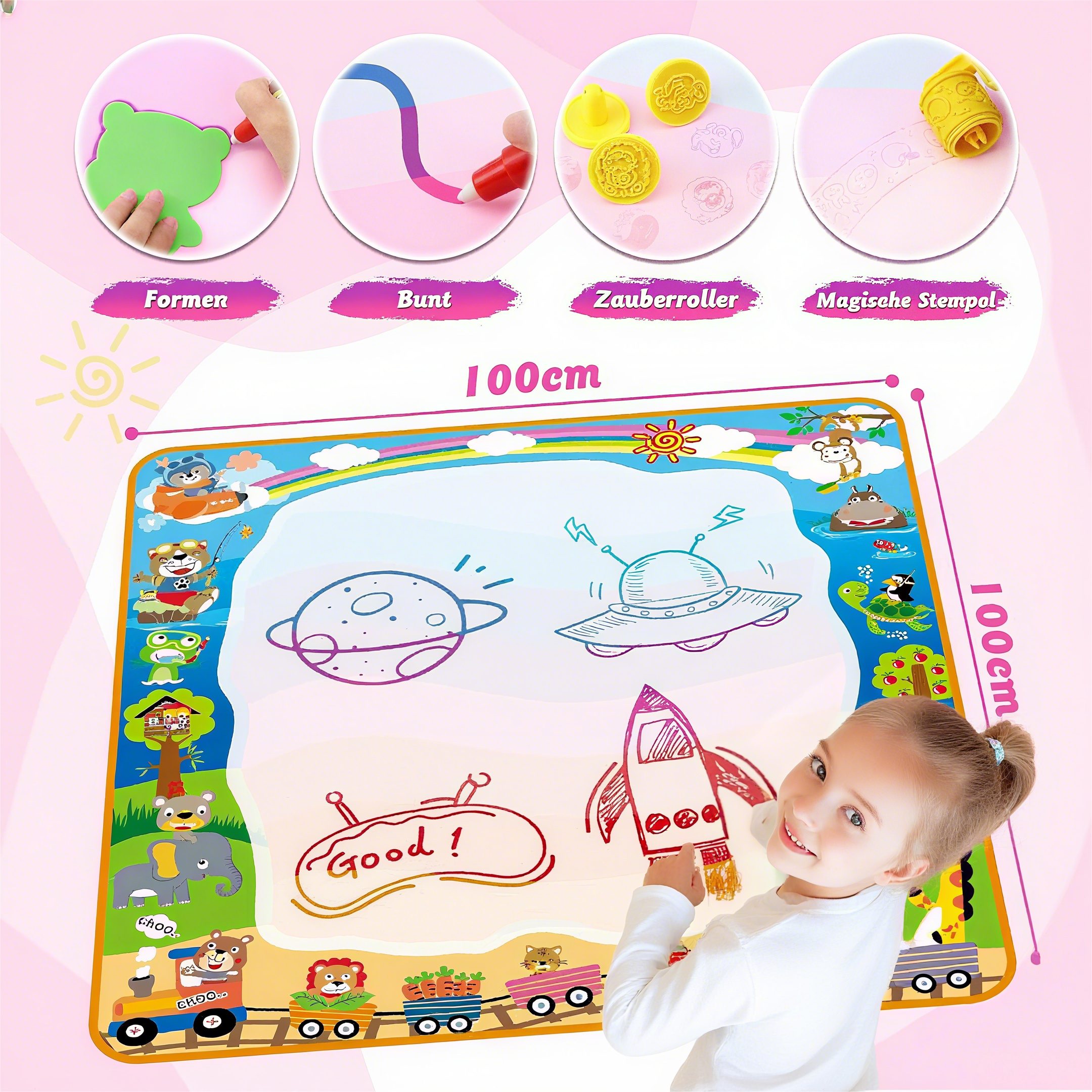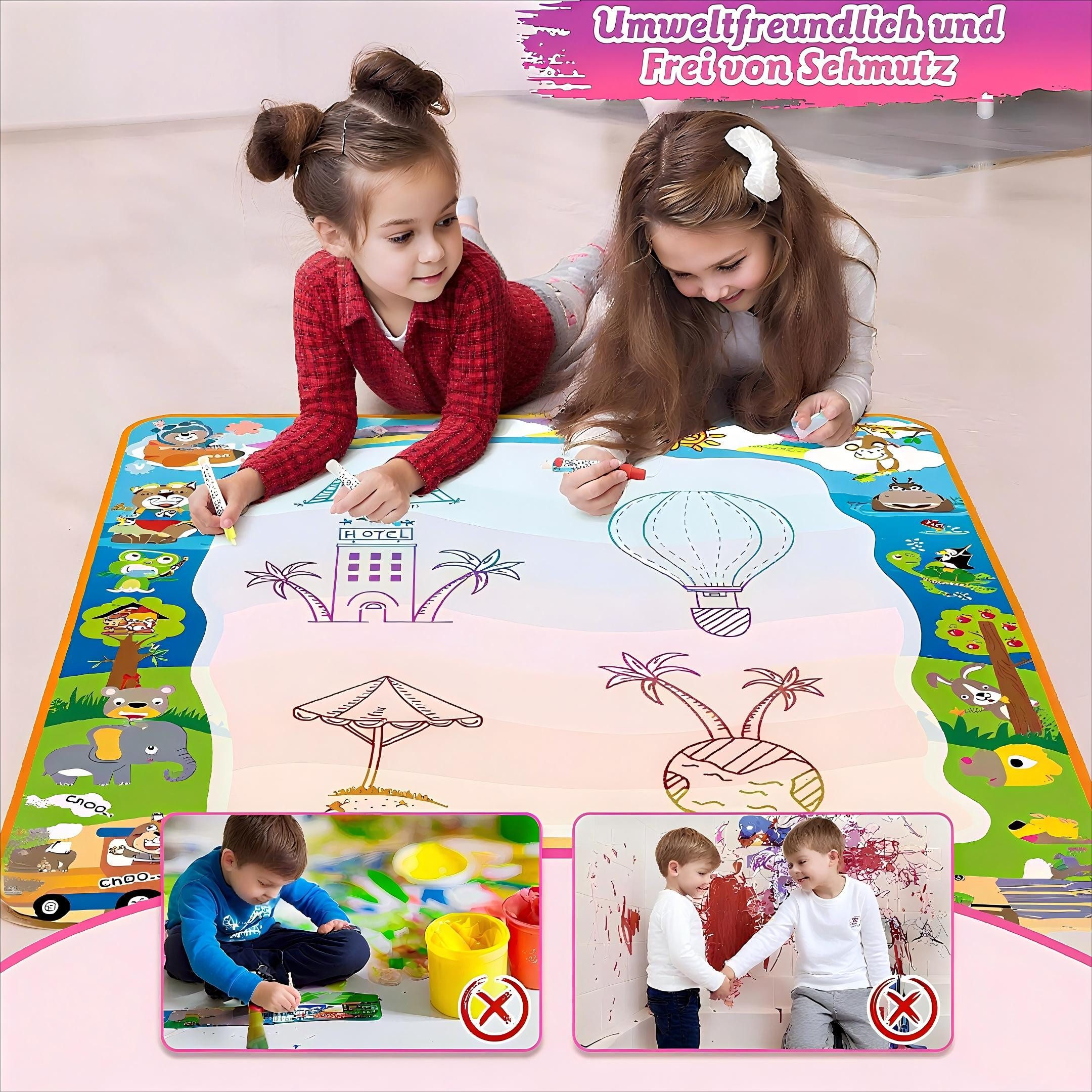Large Painting Space: The Water Doodle Mat measures 100*100 cm, larger than 90% of other Aqua Magic Doodle Mats on the market. It can accommodate 3-4 children at once.