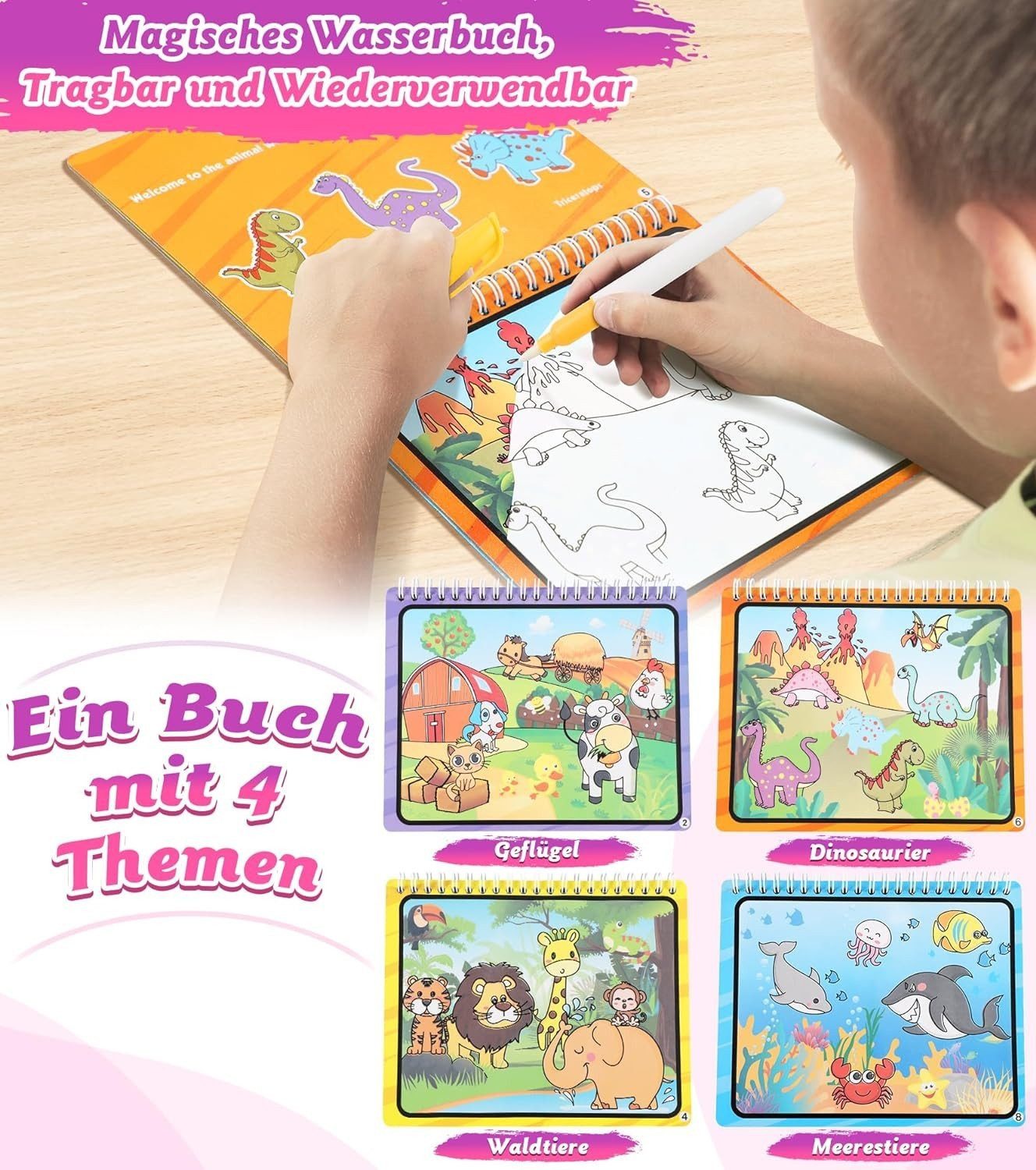 Reusable Water Painting Mat: The Aqua Magic Doodle Mat is made of waterproof polyester. Simply pour water into the pen and draw on the mat. Wait just 10-15 minutes for the water lines to disappear, and children can draw again.