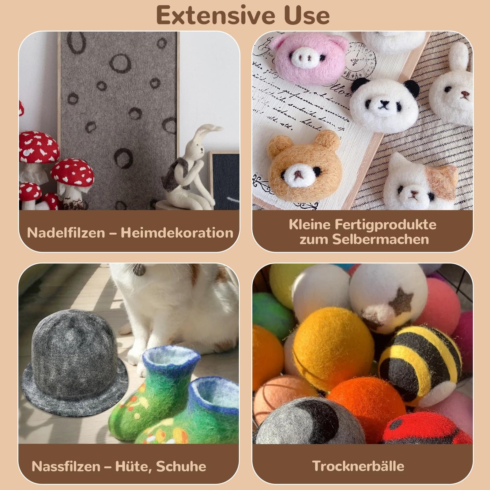 - Versatile wool felting set for needle felting, wet felting, spinning, jewelry making, and more. Perfect for felting enthusiasts and creative DIY projects.