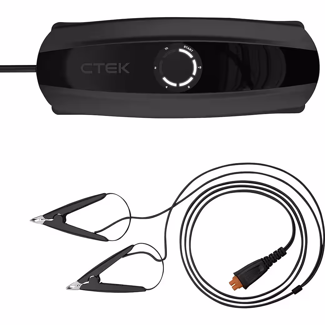 APTO™ technology automatically detects the battery type and activates the appropriate charging program, which displays the remaining charging time until the battery is ready for use. No buttons, no modes – simply connect the CS ONE to any 12V battery and charge. The polarity-free clamps eliminate the guesswork of which clamp goes where. No more incorrect connections. The clamps are also spark-protected, so if they accidentally touch, nothing will happen. Additional functions can be unlocked using the CTEK app with Bluetooth®. Select RECOND to restore and recondition the battery. Select WAKE UP for lithium-ion batteries with low-voltage protection, or to revive deeply discharged lead-acid batteries. Select SUPPLY to transform the CS ONE into a convenient 12V power source. The voltage and current supplied by the charger can also be monitored.