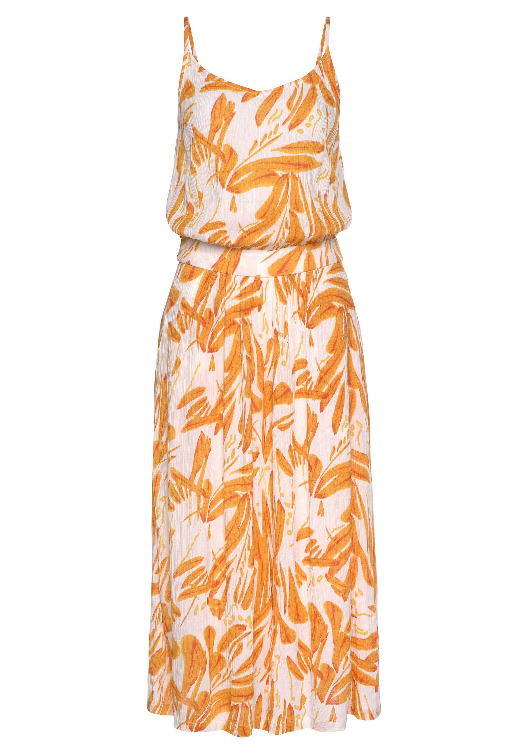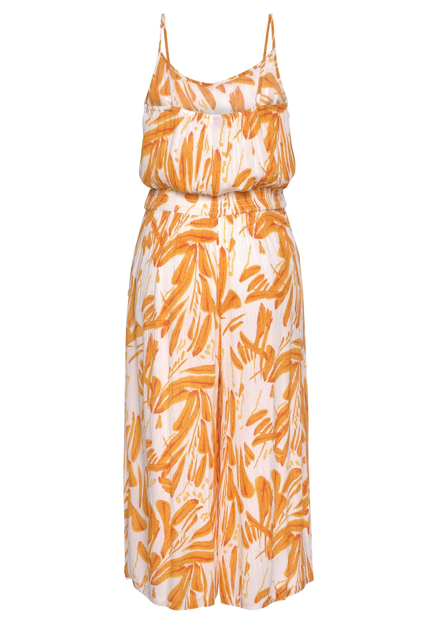 Spread good cheer – with this jumpsuit from s.Oliver. The cheerful all-over print on this one-piece will help you achieve this. In addition, the piece features adjustable spaghetti straps, a V-neck, and an elastic waistband. The pants are culotte-style with side pockets. Comfort is also guaranteed thanks to the comfortable crepe fabric of the jumpsuit. There’s no question about it: this jumpsuit from s.Oliver is a real mood-booster!