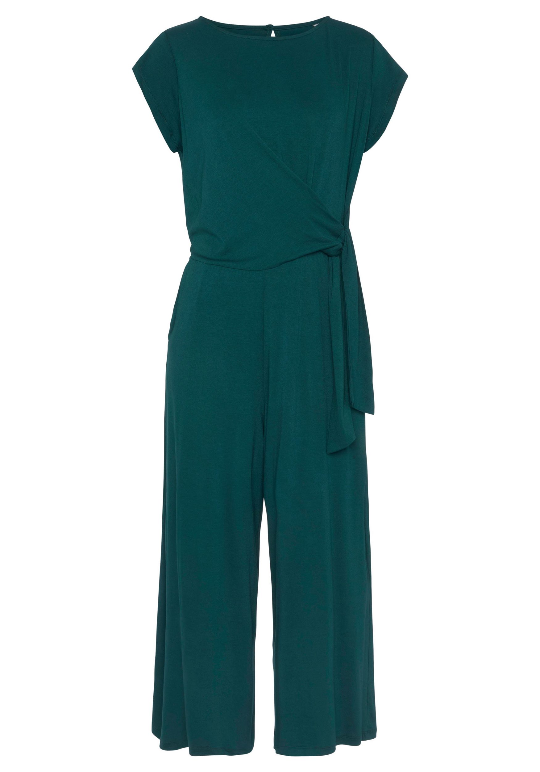 Stylish, comfortable, and versatile – the jumpsuit from Lascana with a waist-cinching knot detail. The design combines a casual T-shirt feel with elegance in a fashionable way! The short sleeves and elastic waistband ensure a flattering fit and beautifully accentuate your silhouette. The side pockets not only add practicality but also give the jumpsuit a casual touch, while the back closure with a button and small slit is a real eye-catcher. Made from soft material, this one-piece is comfortable to wear and allows unrestricted freedom of movement. For everyday wear or special occasions – with the jumpsuit from Lascana, eye-catching looks are guaranteed.