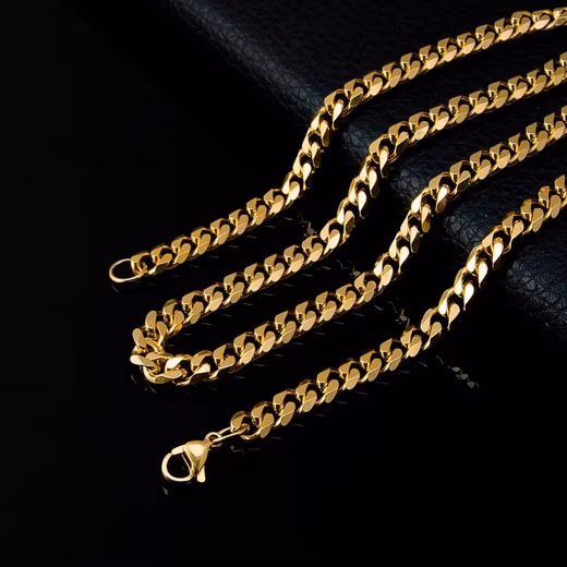 • Gold-colored necklace curb chain with solid links made of stainless steel in jeweler quality – stainless steel jewelry for women and men