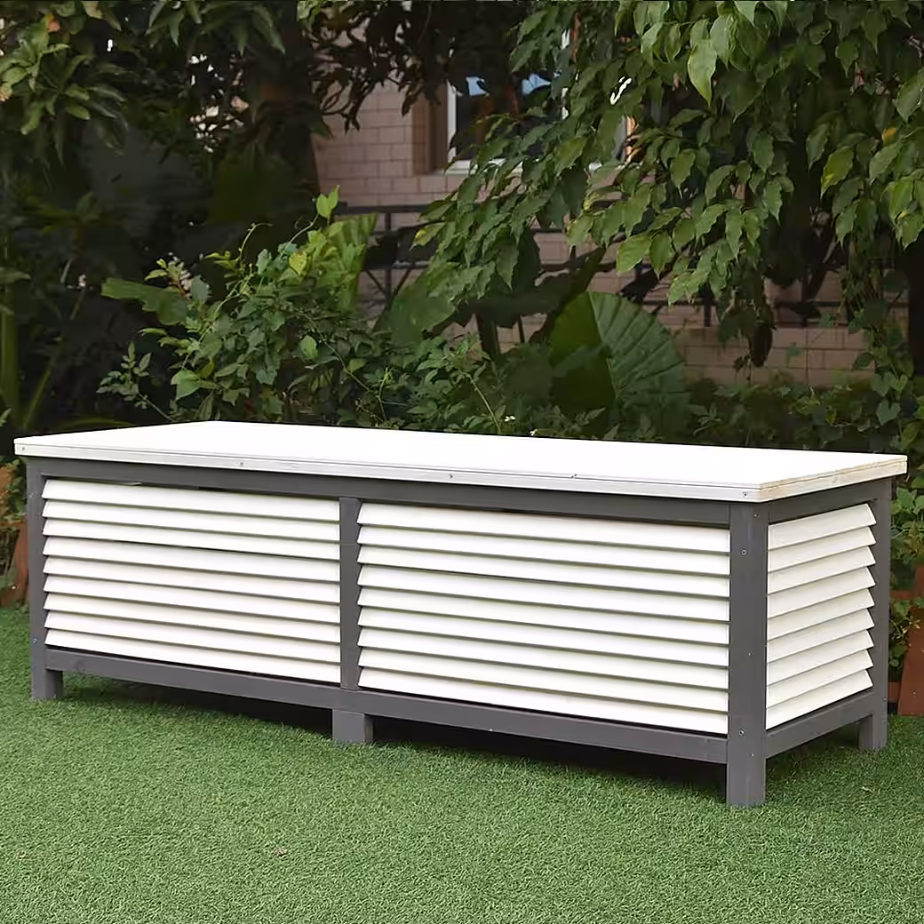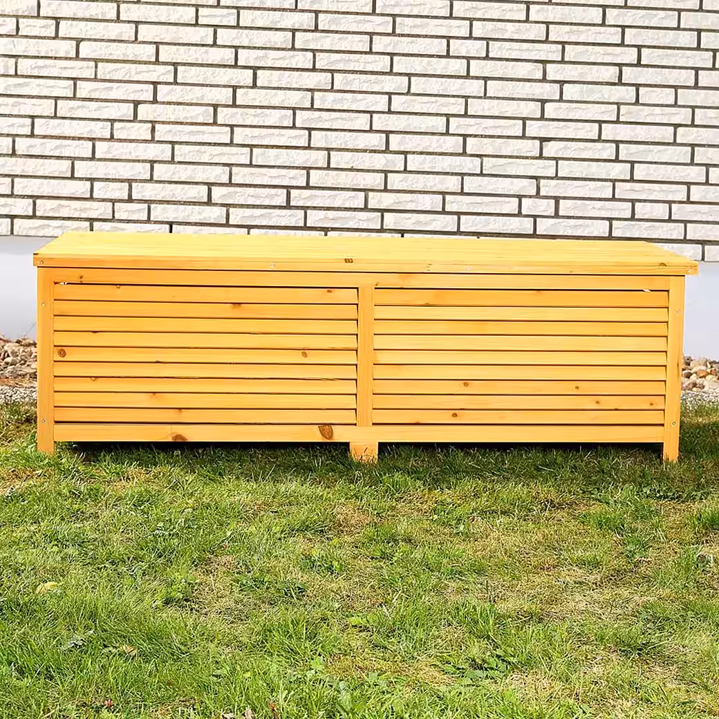 - Stylish outdoor storage : XXL wooden cushion box 140 cm / Our generously sized XXL wooden cushion box is the perfect solution to store your garden cushions, pillows and other outdoor items safely and stylishly.