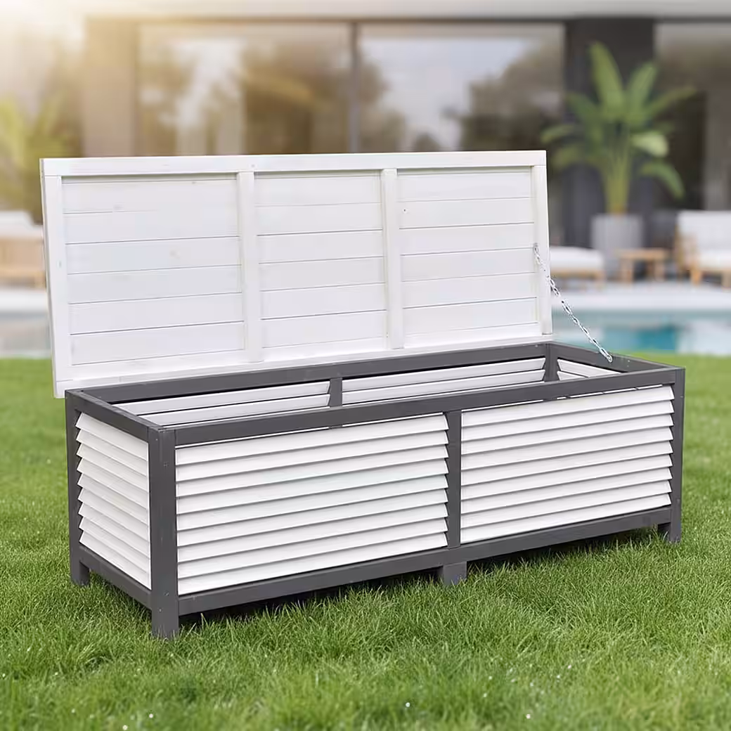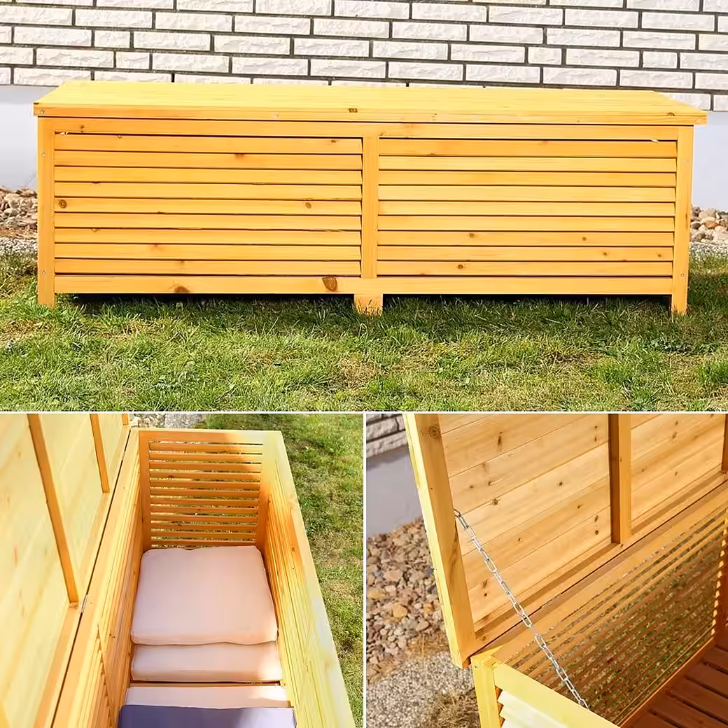 - Practicality and aesthetics combined : XXL wooden storage box / Invest in the organization and aesthetic appeal of your garden. Our XXL wooden storage box combines practicality and elegance. Order today and create a tidy and stylish outdoor space.