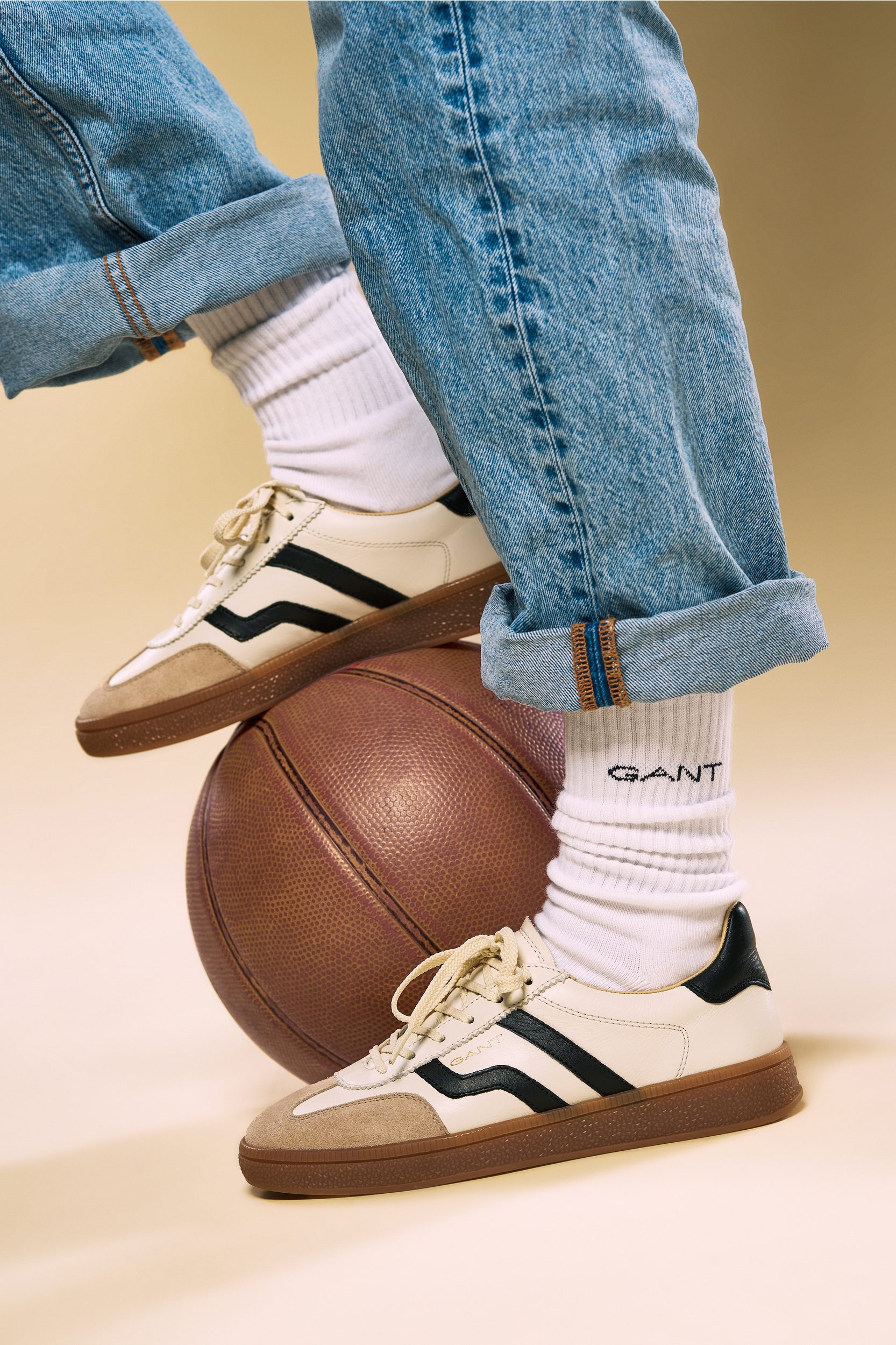 An elegant, retro-inspired sneaker with a sleek silhouette and vintage charm. The leather upper with suede details, along with the leather lining and leather-covered insole, ensure a comfortable fit. The iconic honey-colored rubber outsoles give the shoe its unique character. Featuring subtle logo branding on the side. All in all, a must-have for every man!