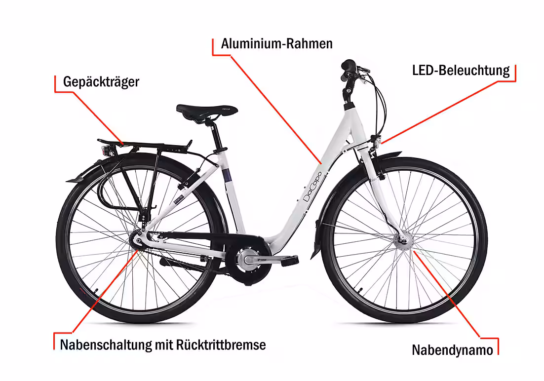 The 28″ DaCapo PADOVA women’s city bike is your perfect everyday companion for city trips, shopping, commuting, and much more. Besides its timeless design in classic colors, the Padova comes with a host of convenient features:
