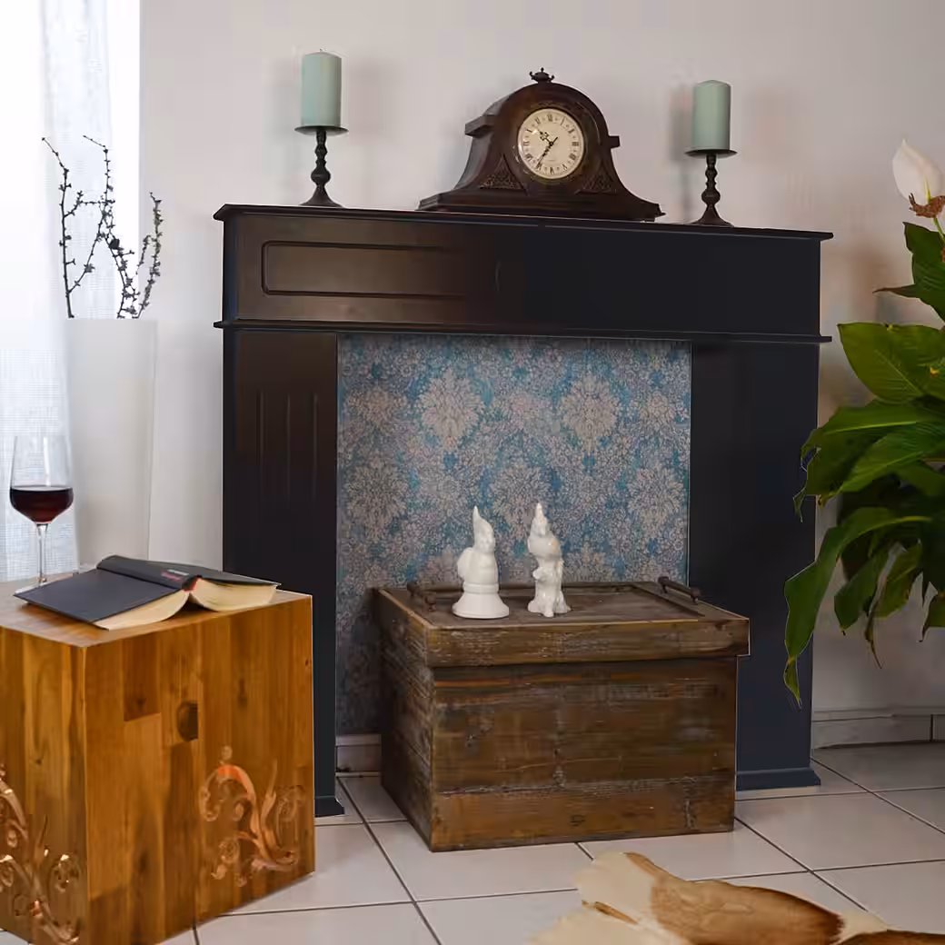 For living rooms and bedrooms, but also for hallways : The fireplace surround brings country style to any wall – yet its slim frame means it takes up hardly any space.