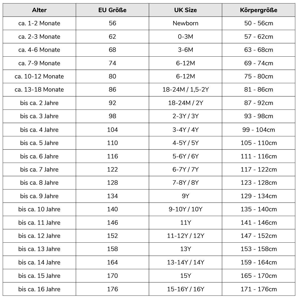 • Available in six sizes from 98 to 164