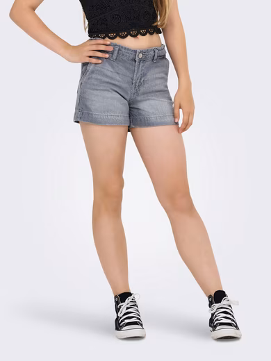 The “KOGCOMET WIDE SHORTS DNM MAT624 NOOS” denim shorts from KIDS ONLYÂ give your daughter plenty of freedom of movement, especially when playing outside, riding her bike, or playing catch. The regular waistband sits right on the hips, and the straight fit of these girls’ jeans ensures a relaxed, comfortable fit.