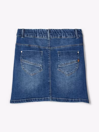 - Denim skirt with adjustable waistband and additional belt loops for particularly narrow waists