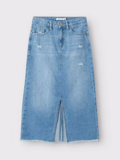 Teens who like to go casual are well-equipped with the calf-length denim skirt “NKFKAT DNM LONG SKIRT 3724-BE NOOS” by Name It . The slightly tailored cut also sits loosely and comfortably.