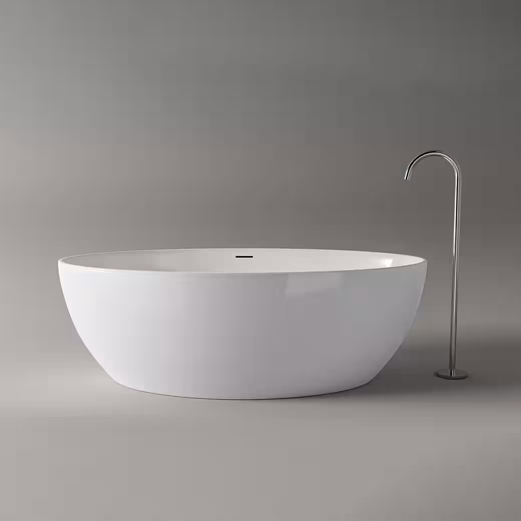 The freestanding DESTINO bathtub is a true highlight made of high-quality sanitary acrylic and promises a unique bathing experience. Its elegant curves and spacious interior impress at first glance.