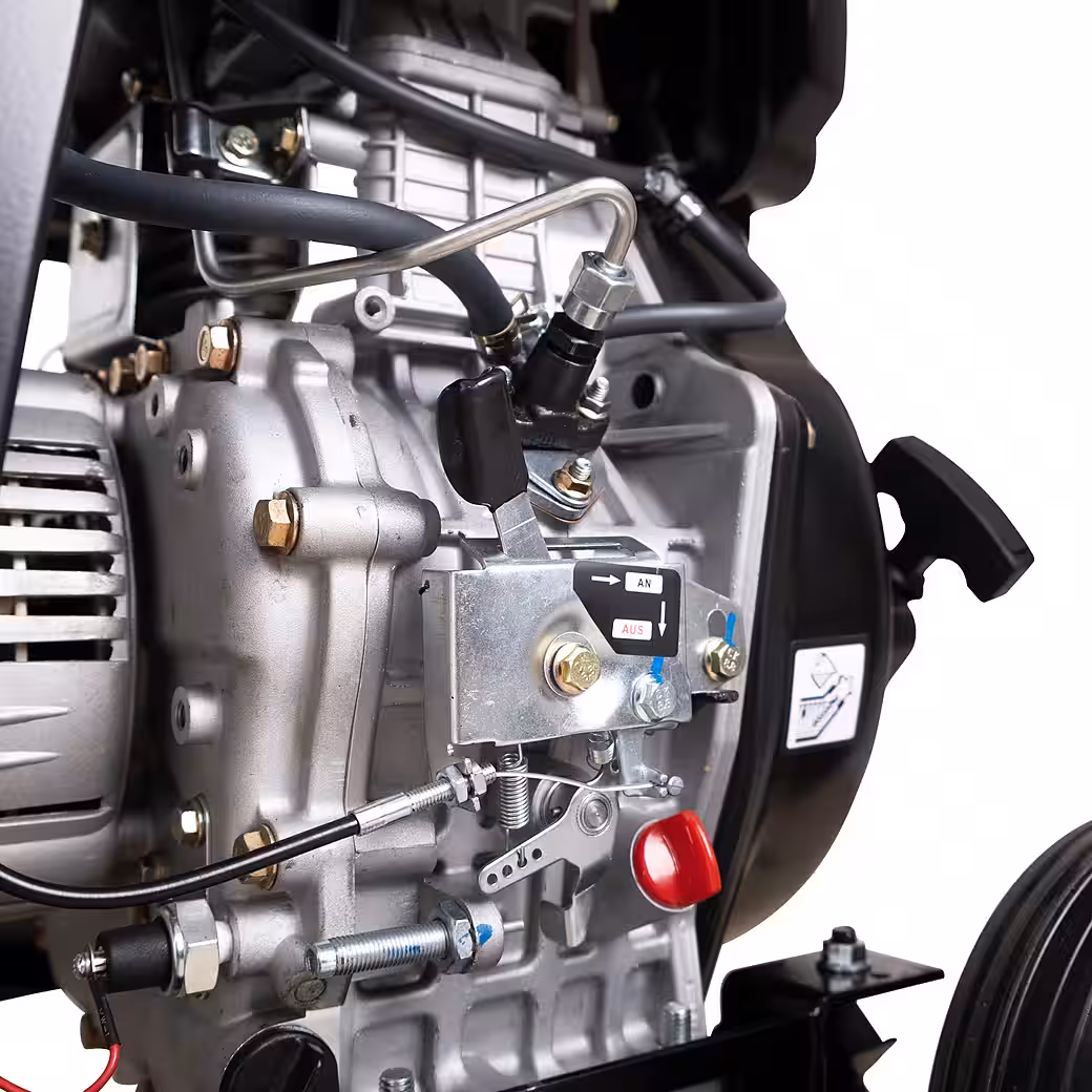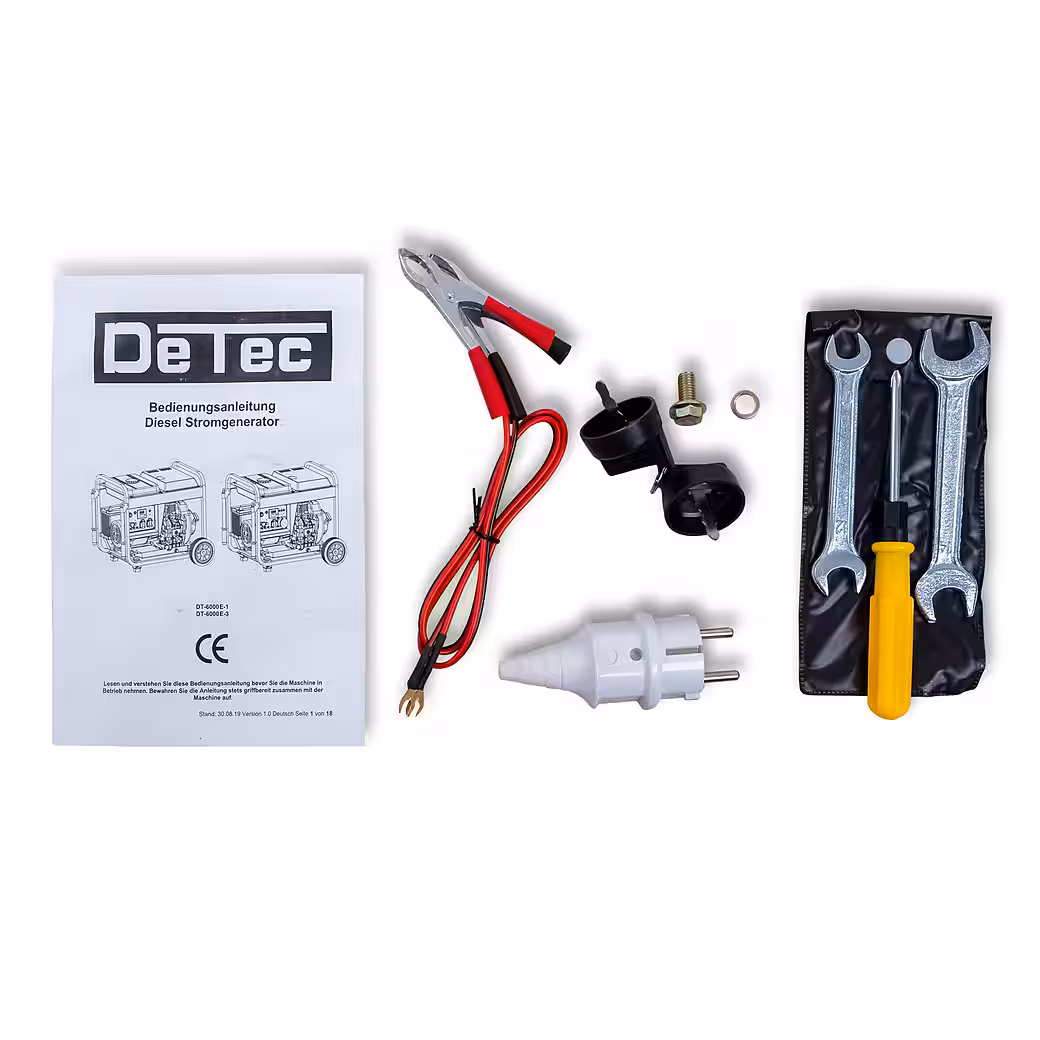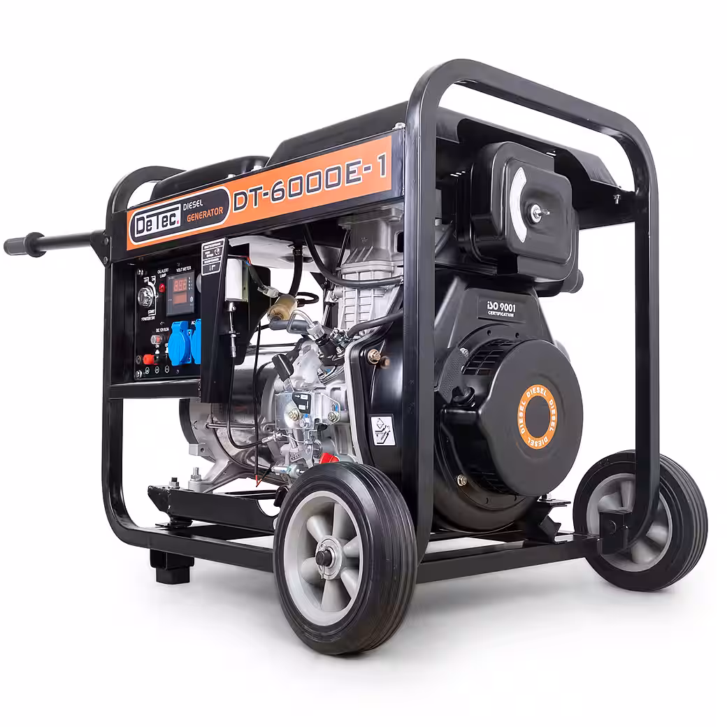 Be prepared for anything: With the DeTec DT-6000E-1 diesel generator, offering up to 5500 watts of maximum power. Wherever there are no electrical outlets, this generator provides you with a 5 kW rated output. On construction sites, in the garden, at your weekend property, or during a power outage, this generator supports you with two 230 V sockets, delivering up to 5.5 kW. Its robust construction makes it a reliable partner for mobile power supply. Thanks to its wheels and handles, the generator can be easily moved around the site. The generator can be conveniently started with the electric starter. The starter battery is charged during operation. Should the battery ever have insufficient voltage for the electric start, the decompression lever makes starting with the recoil starter easier.
