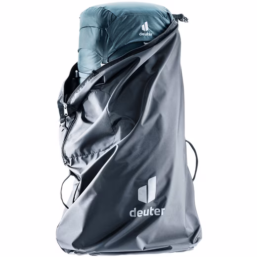 Deuter travel accessory, Flight Cover 40-60. This lightweight transport cover, made of water-repellent and durable material with a roll-top closure, protects backpacks and their straps, buckles, and belts during air travel. Side handles ensure easy carrying. When not in use, the cover folds away neatly into its integrated stuff sack. Dimensions: 94 x 44 x 35 cm. Volume: 40-60 liters. Weight: 360 g. PFAS-free: This Deuter product is free of per- and polyfluorinated chemicals. bluesign® product: Consumer products bearing the bluesign® Product label meet the strict safety and environmental requirements of the bluesign® system. Material: 100% polyamide.