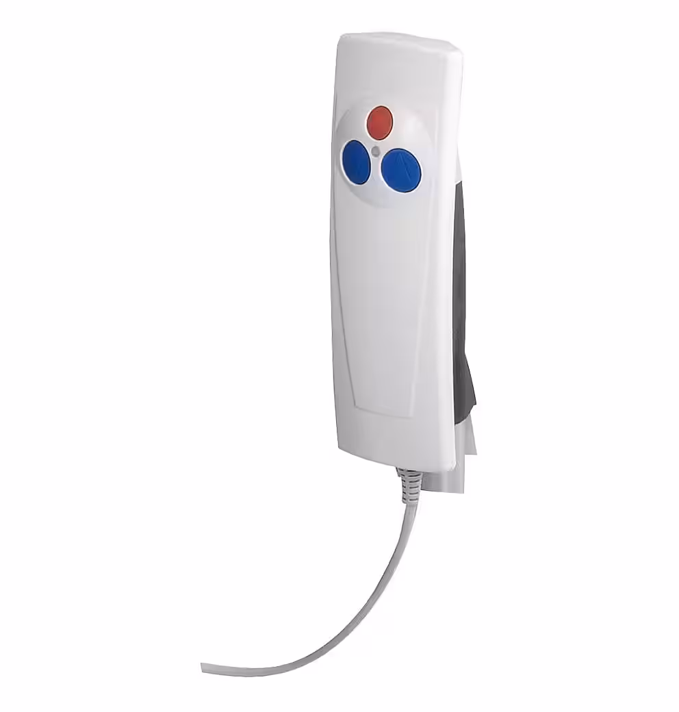 KANJO bathtub lift from Dietz GmbH, including blue upholstery. Warranty: 5 years on the bathtub lift and 3 years on the hand control unit with battery. HMV 04.40.01.0060. This bathtub lift provides safety and freedom during daily personal hygiene. Ergonomically shaped seat and backrest surfaces and adjustable reclining positions at the touch of a button ensure relaxed bathing comfort. For all standard bathtub sizes. Hand control with coiled cable, battery charger, and fast-charging technology. Skin-friendly and non-slip surface. Backrest swivels up to 40°. Stepless lifting and lowering at the touch of a button. Extremely stable base plate. Disassembles into 2 main components. Includes 3 lithium-ion batteries. Technical data: Overall height 110.5 cm. Overall depth, backrest upright 69 cm, backrest lowered 90 cm. Seat width with side flaps 71 cm, without side flaps 37.5 cm. Seat depth 50 cm. Seat height 6.5 to 45.5 cm. Backrest 35 x 68 cm. Max. load capacity 140 kg. Weight with hand control 10.8 kg.