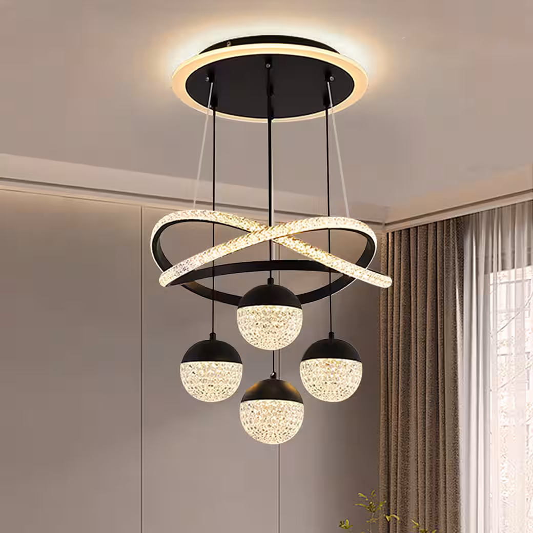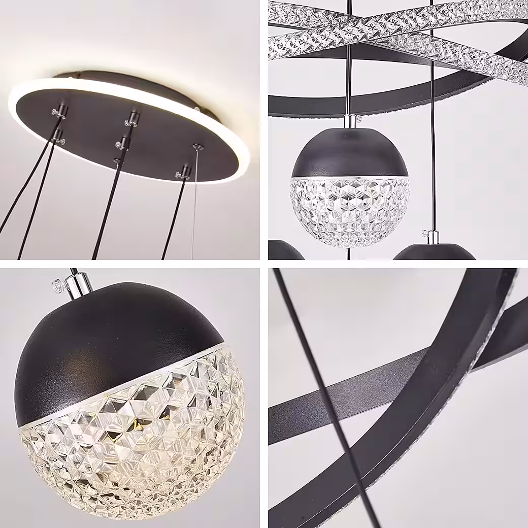 • The LED chandelier is made of high-quality aluminum and acrylic crystal.