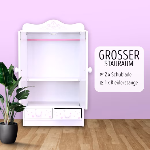 - Incl. clothes rail and a separate compartment for small shoes (adjustable shelf in 3 positions), 2 drawers.