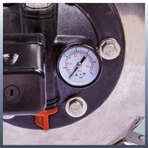 The pressure gauge provides information about the water pressure at all times. If the pressure drops, the pump is automatically switched on by the pressure switch.