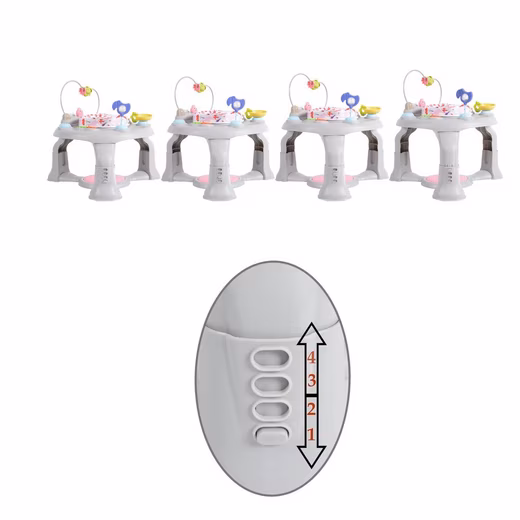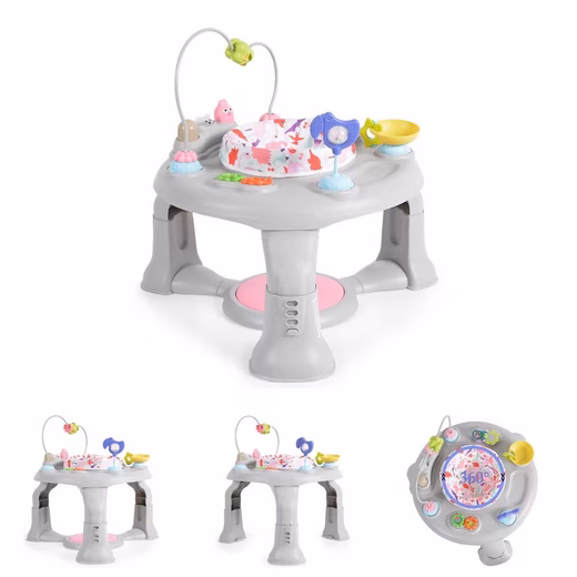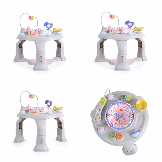 Special features of the Cangaroo Hopser Mate play center: seat rotates 360°, 4-way height adjustable: