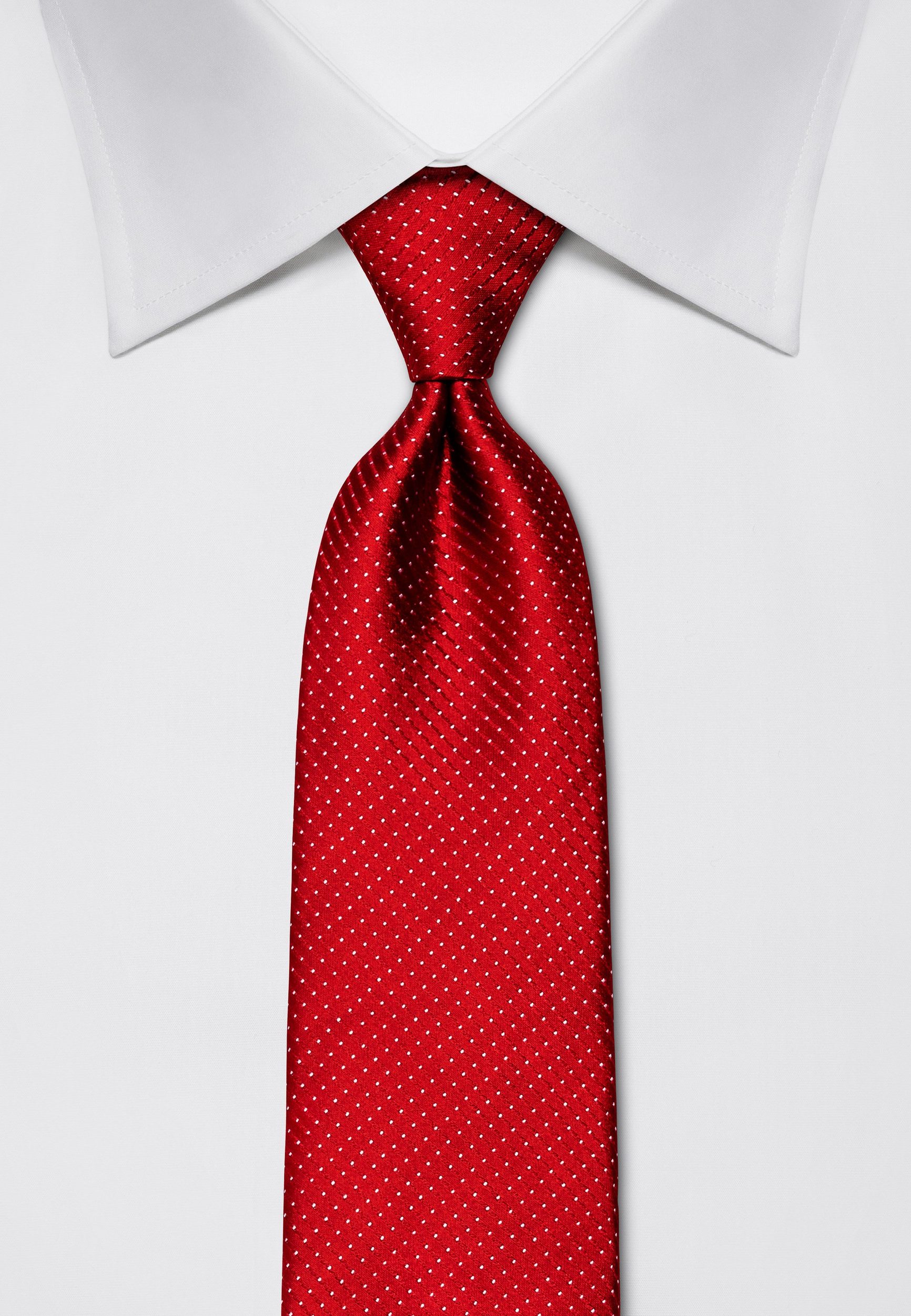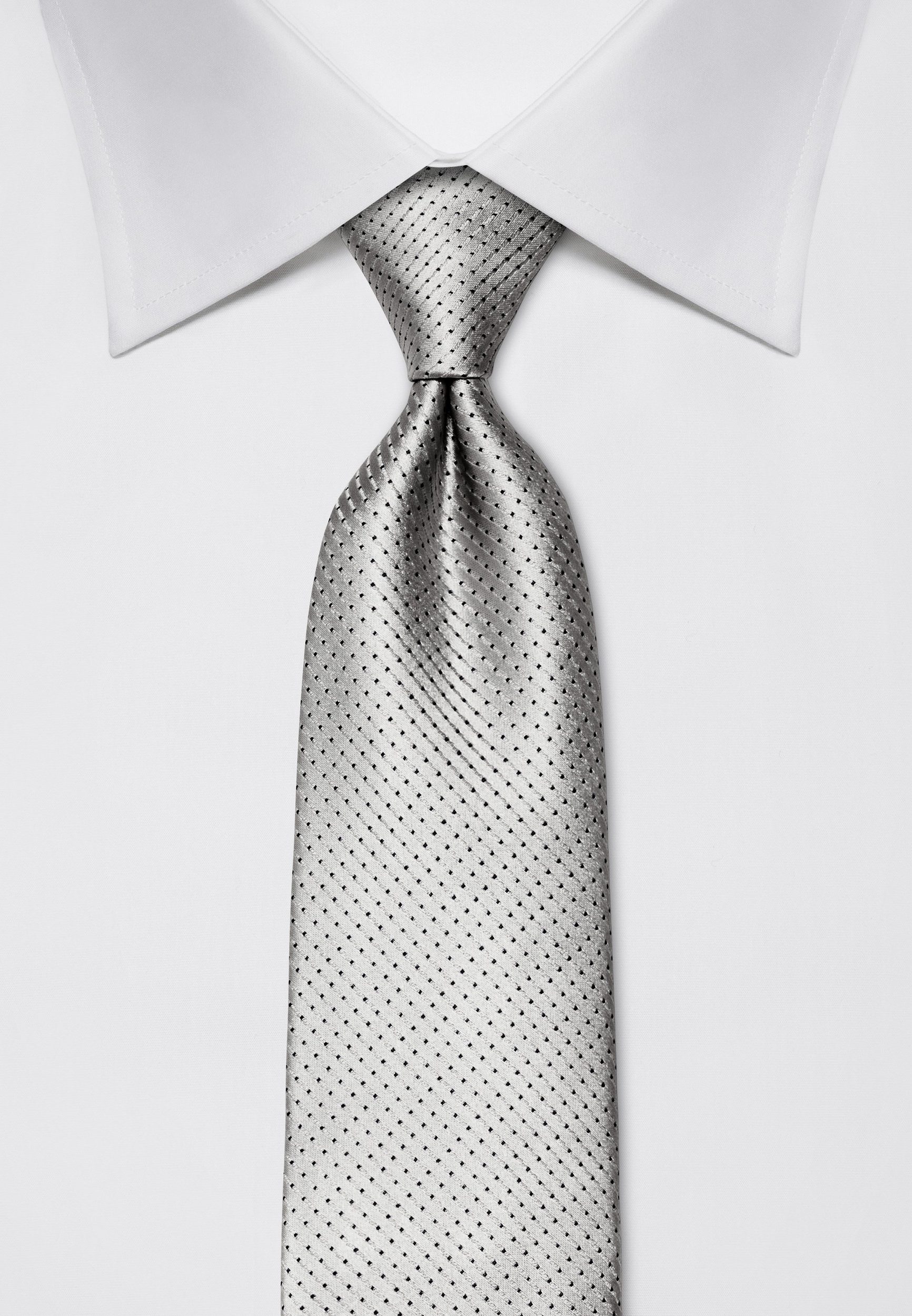 This pure silk tie is handcrafted and features an elegant dot pattern. Thanks to Teflon anti-stain protection, dirt simply rolls off the tie. On the inside of the wide end of the tie is a loop for the center seam. This allows the center seam to be tightened repeatedly, ensuring it stays ‘relaxed’ even after repeated tying.