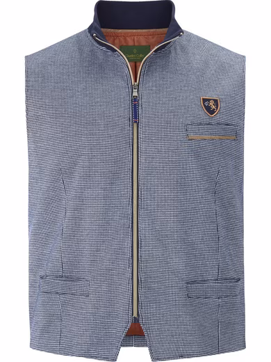 With the DUKE MADDOC sweatshirt vest, Charles Colby has created a truly stylish piece for your leisure time at the country estate. The uncomplicated zipper and dynamic stand-up collar give the vest a very modern look, while the aristocratic coat of arms badge on the chest and the delicate houndstooth pattern add a timeless touch. The fit can be optimally adjusted with the belt at the back. Two side pockets and another on the chest are extremely practical. The skillful use of contrasting color splashes gives the DUKE MADDOC the finishing touch. Outer material: 98% polyester, 2% elastane; lining: 100% polyester. Machine washable.