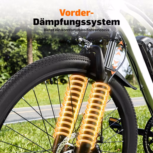 With shock-absorbing design + 26*1.95″ CST anti-skid tires and mountain bike saddle (matching support); drive smoothly even on impact surfaces; The entire vehicle can carry up to 150 kg – suitable for different body sizes.