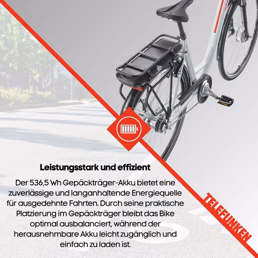 • E-bike with high-performance battery (Li-Ion) with 37 volts / 14.5 Ah / 536.5 Wh