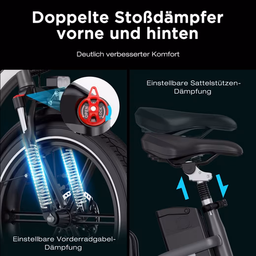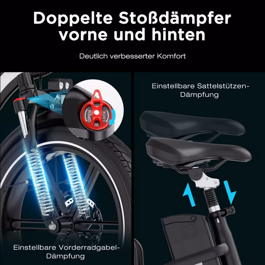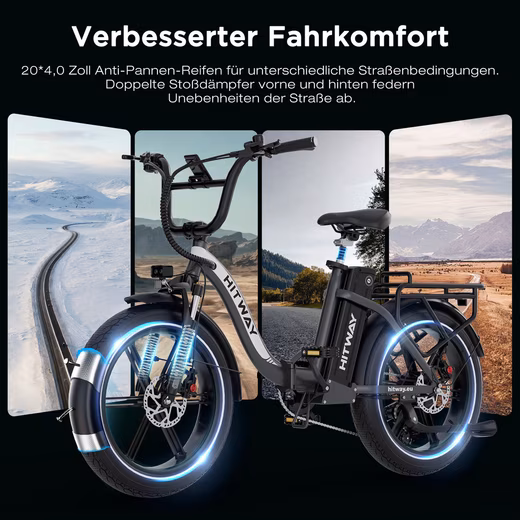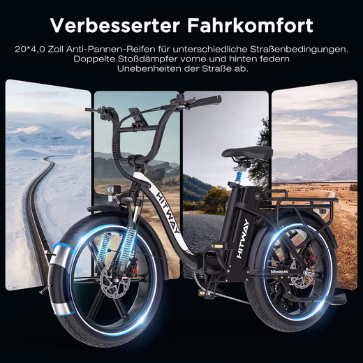 All-terrain comfort: 20×4.0 inch fat bike tires & dual suspension