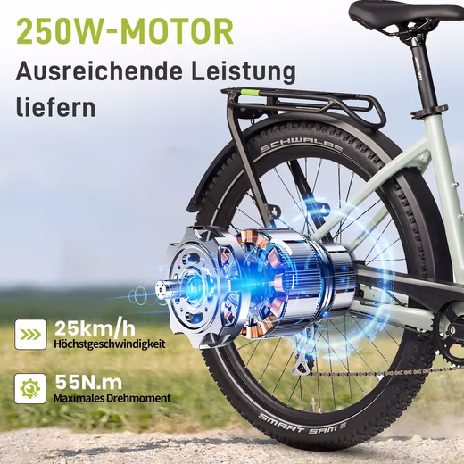 • 250W 55Nm rear wheel motor, high quality and good looking.