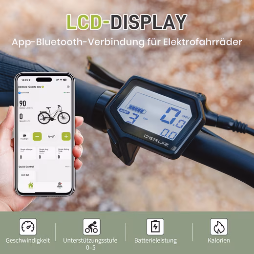 Deruiz Quartz SUV combines the features of a mountain bike and a city bike for a variety of scenarios, whether it’s crossing rugged mountain trails or riding city streets.