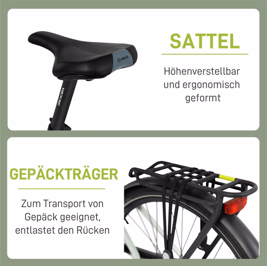 Quartz SUV has an STVZO-approved headlight with 40 lumens. Especially in forests or on unpaved paths, good lighting ensures a safe ride. It is also equipped with a rear rack that makes it easier to transport items and increases driving comfort.