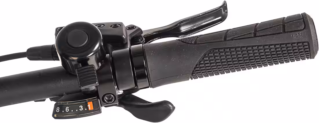 The swept-back handlebars ensure you always have a firm grip on the bike. Both the Ahead stem and the handlebars are made of weight-saving aluminum.