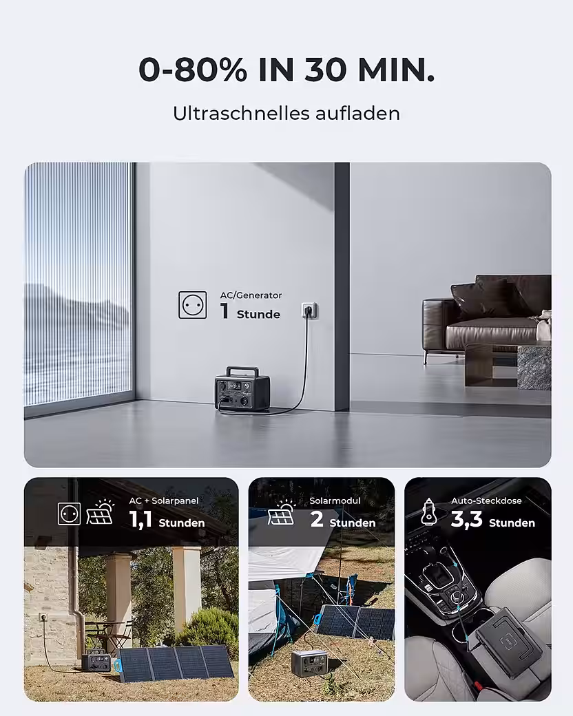 The EB3A has a fast charging capacity of 430 W, which allows for an 80% charge, giving you more than enough time to drink a cup of coffee or have a conversation, thus providing you with sufficient power when needed.