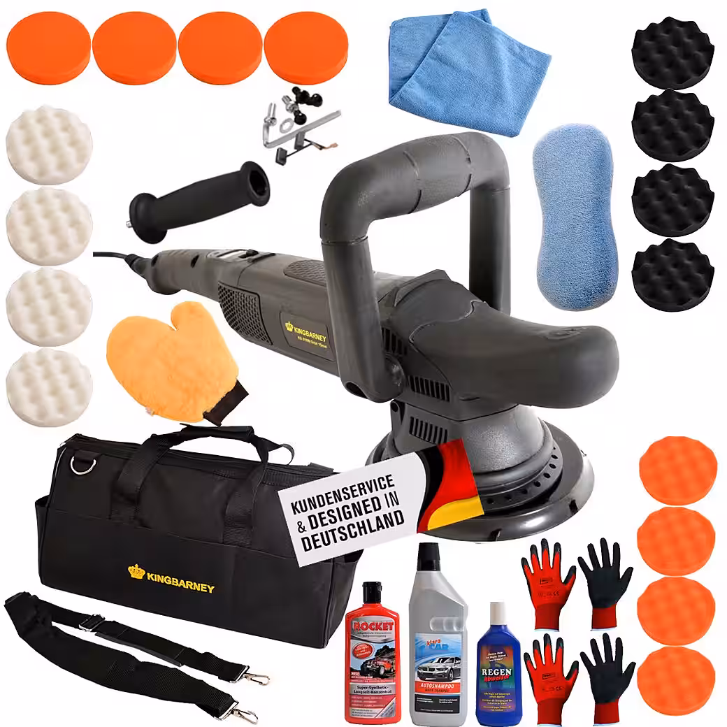 - The polishing machine comes with a practical carrying case featuring a shoulder strap and numerous smaller compartments inside and out for your polishing machine accessories.