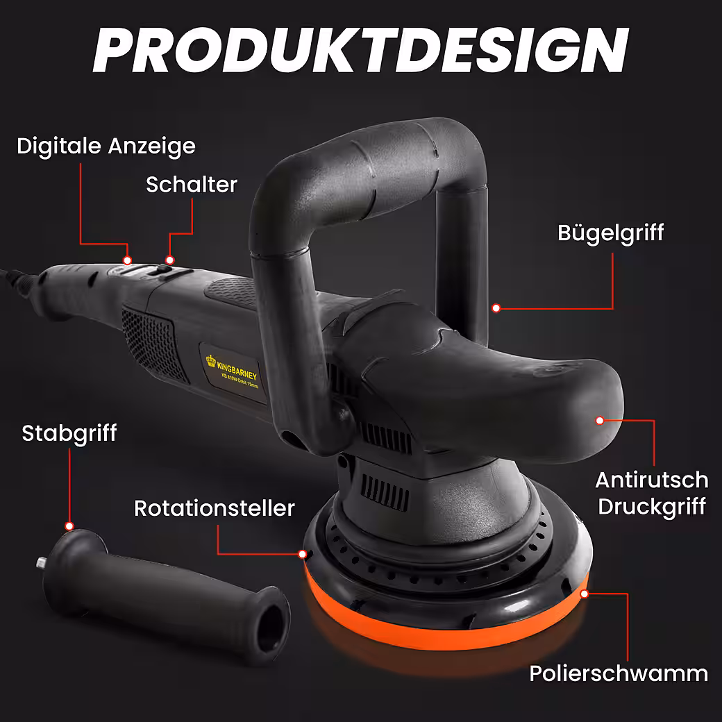 - 7-stage speed control with digital display. Professional results without risk! Ideal for applying polishes and waxes, and safe for all paint types.