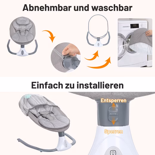 A newborn baby needs one thing above all: closeness, security, and gentle movement. This smart electric baby rocker offers a well-thought-out solution for parents who want to better organize their daily lives without sacrificing closeness to their child. Designed for babies from 0 to 12 months and up to a weight of 9 kg, the rocker provides soothing moments – whether for falling asleep, resting, or playing.