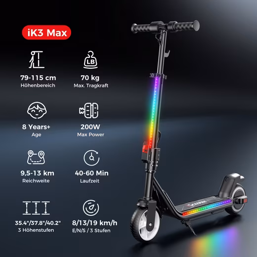 Equipped with a high-performance 200W motor, the scooter ensures effortless riding, even on inclines, and a more comfortable ride. The large 21.6V/4.5Ah battery with integrated BMS battery management system monitors the temperature, guaranteeing maximum safety. With a speed of up to 12 mph and a range of 5–8 miles (approximately 60 minutes, depending on weight and terrain), it’s ideal for short trips.