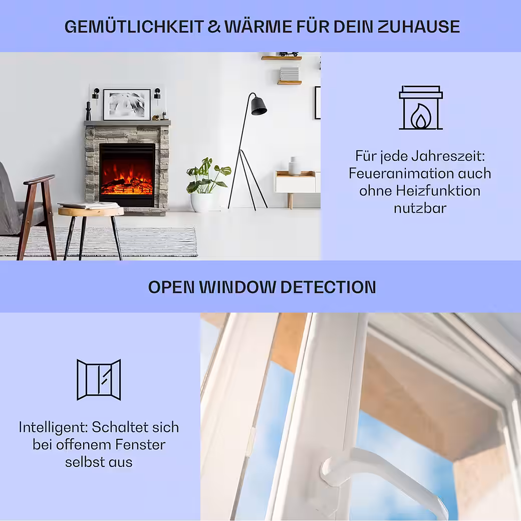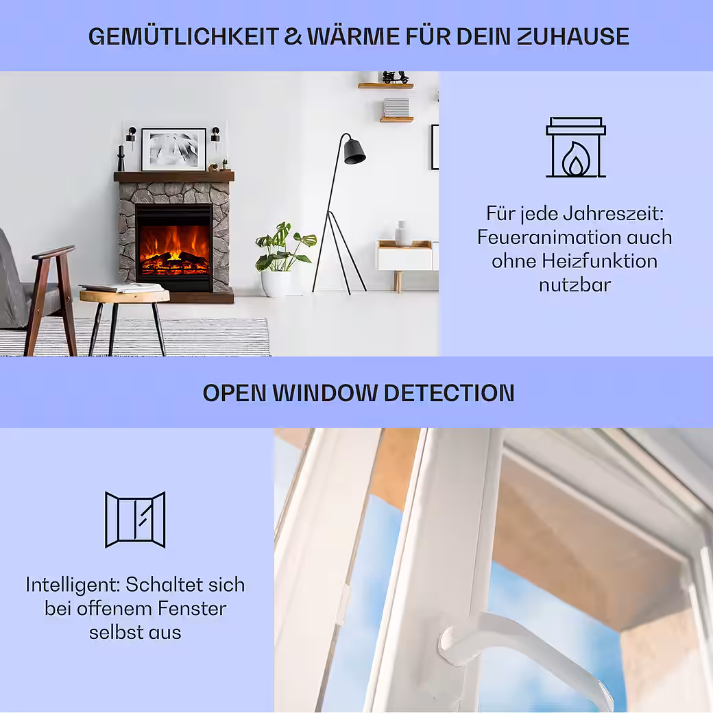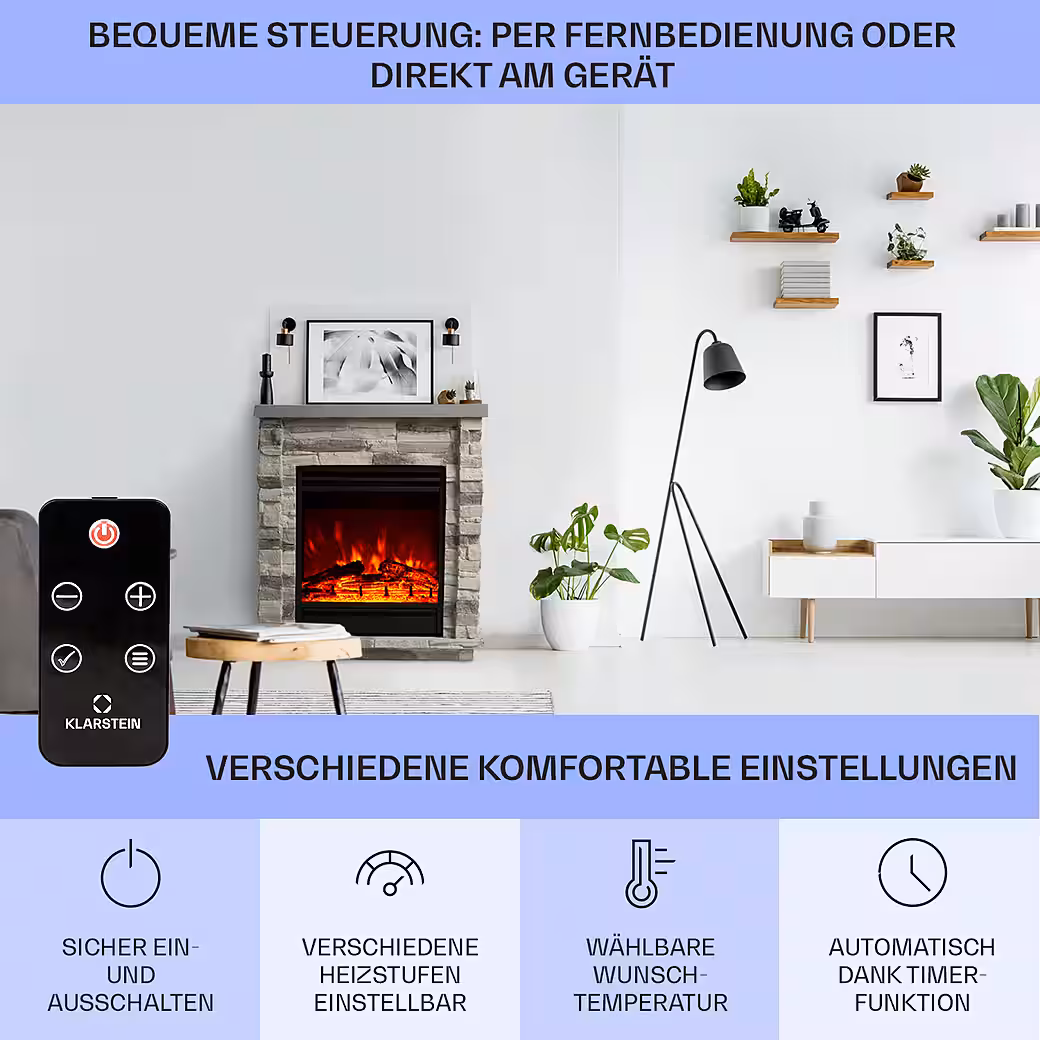 - VERSATILE USE OF THE HEATER: Our electric fireplace with heater simulates a real fireplace fire. Its uses are diverse: in homes, hotels, cafes, and restaurants.