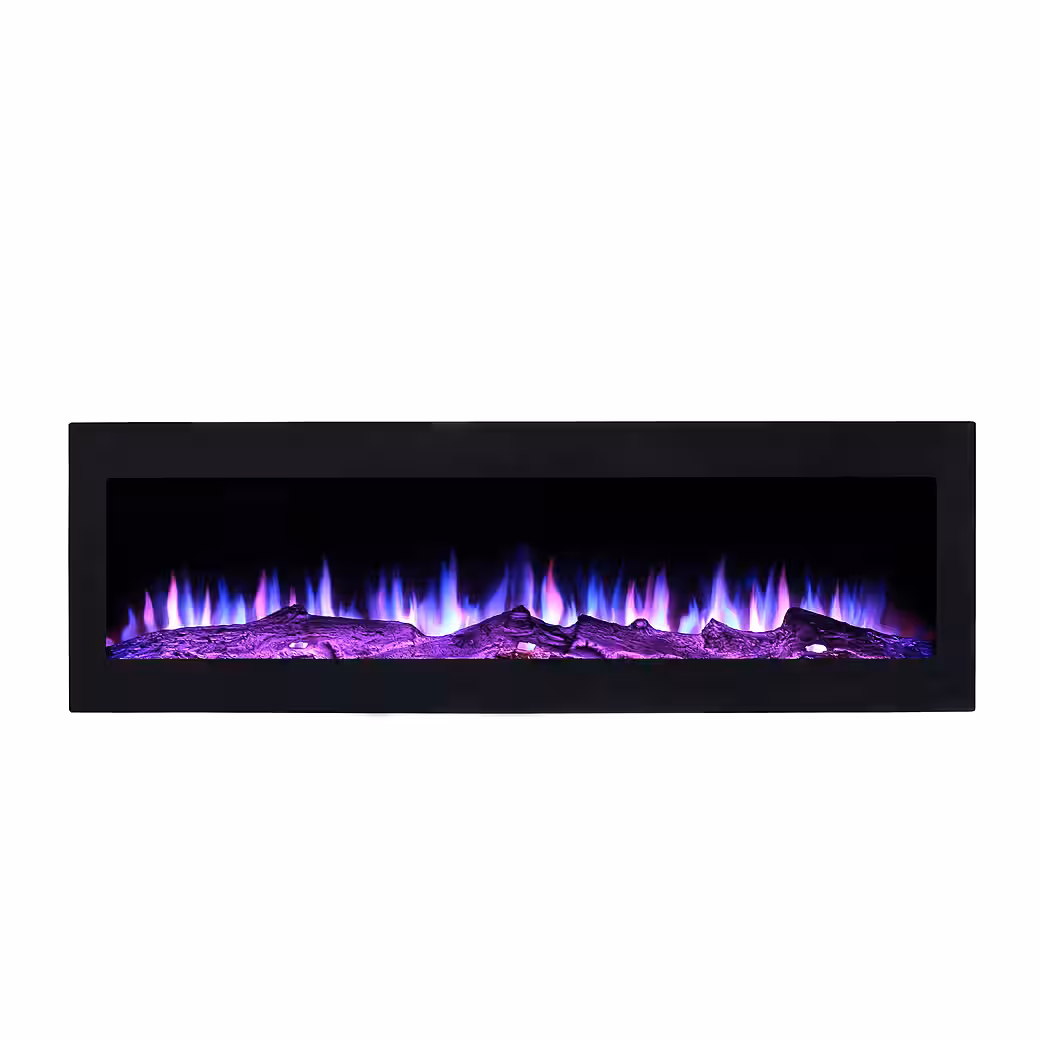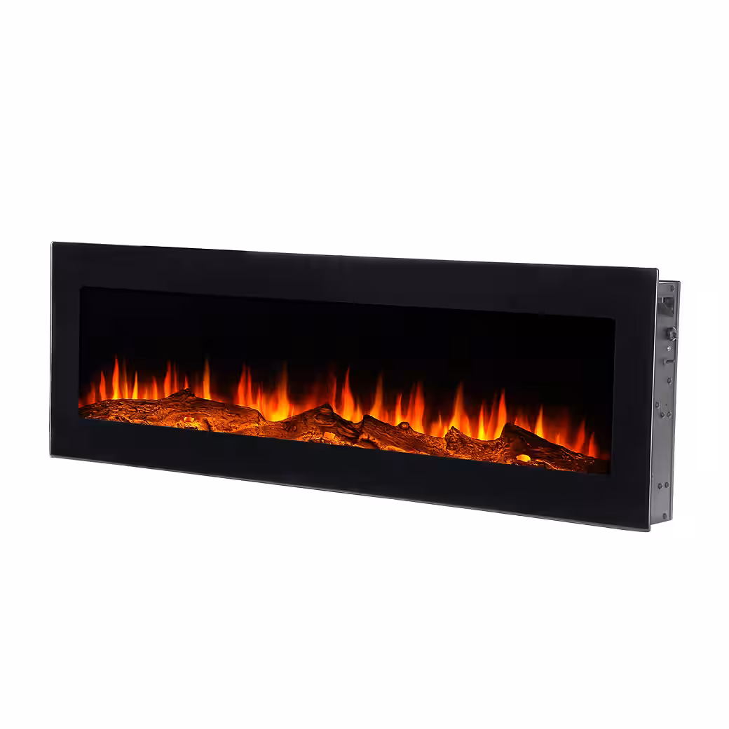 The “NOVA” electric fireplace from El Fuego®, with its modern and elegant design, is designed for wall mounting and impresses with its high-quality workmanship, leaving nothing to be desired even for the most discerning tastes. It’s the perfect addition to your living space, whether for warming a room or simply as a decorative element. State-of-the-art LED technology creates the perfect illusion of a real wood fire with glowing logs. On cold days, the integrated heater provides pleasant warmth. It can be placed anywhere in your house or apartment, as no chimney or flue is required. Furthermore, there’s no bothersome smoke, soot, or mess like with a real fireplace. Simply plug it into a standard outlet and you’re ready to go. The fireplace, with its sleek black safety panel front, blends seamlessly into any interior design. It can be mounted on the wall using the included wall bracket or recessed directly into the wall. You have the option of enjoying the flame effect without the heating function, as the fireplace can be switched on and off independently. With switches for lighting and flame effects, as well as a fan and heater. Features a switchable heating function, a dimmer for the interior fireplace lighting, and overheat protection. As a special highlight, the fireplace also includes a remote control for convenient operation from a distance.