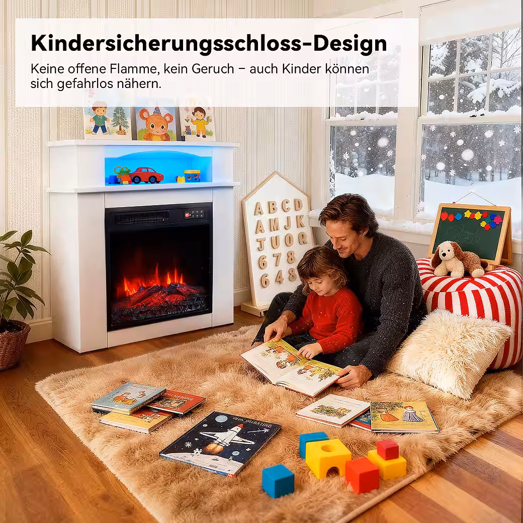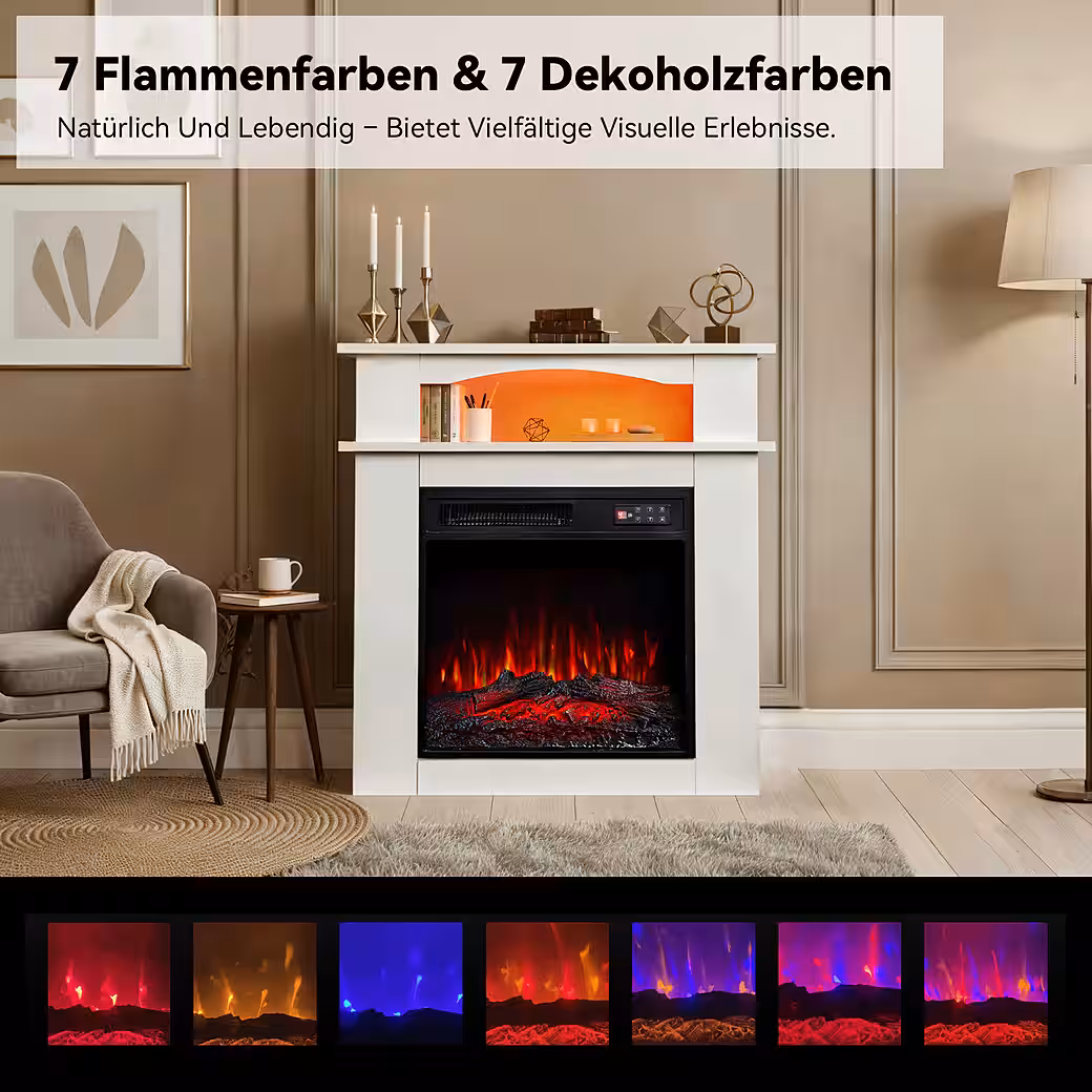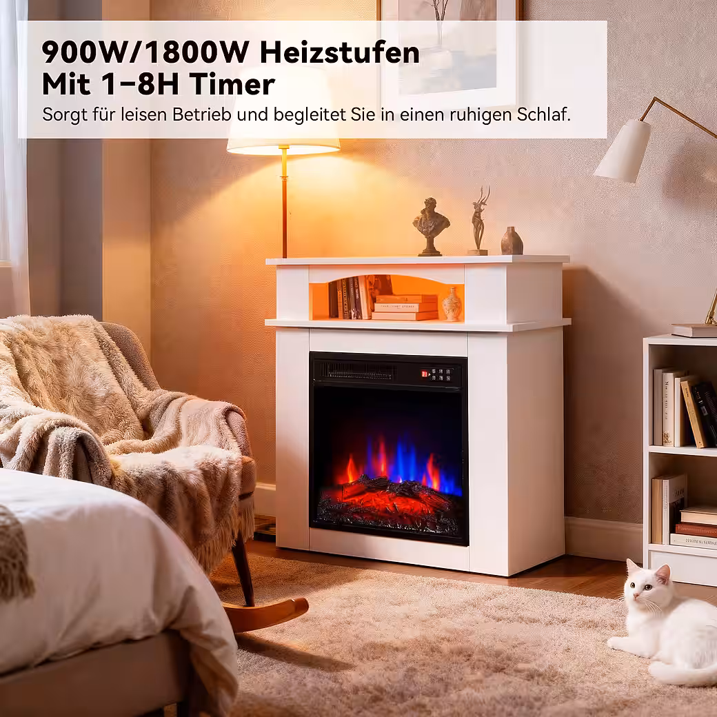 Efficient heating, pleasant constant temperature: With 900W/1800W heating levels for rapid heating, flexible for different heating needs at any time of day. An integrated timer and overheat protection ensure a safe night’s sleep. The electric fireplace’s housing is made of high-quality, heat-resistant plastic – no need to worry about scratches or rust.