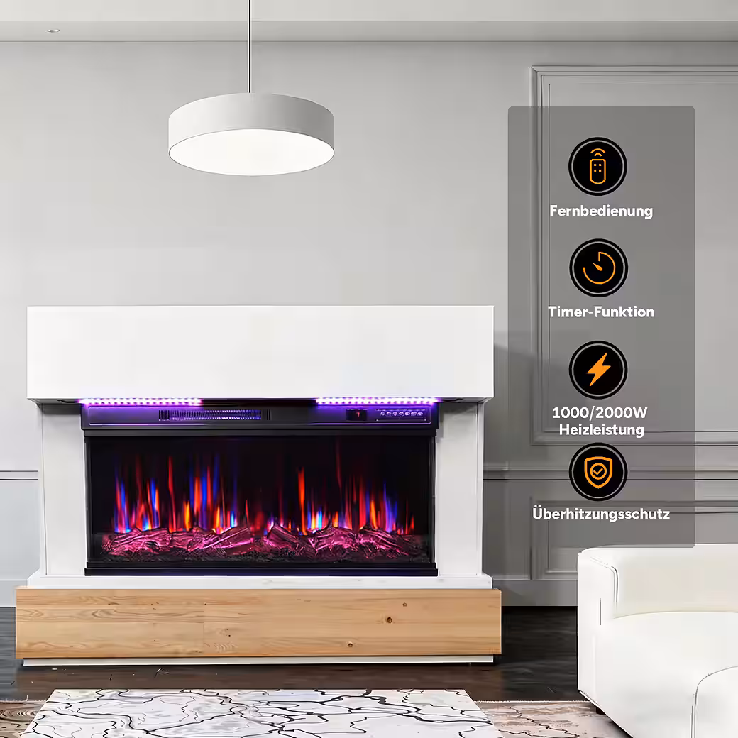 - 3D flame with 12 colors & 20-color RGB light – flexibly adjustable.