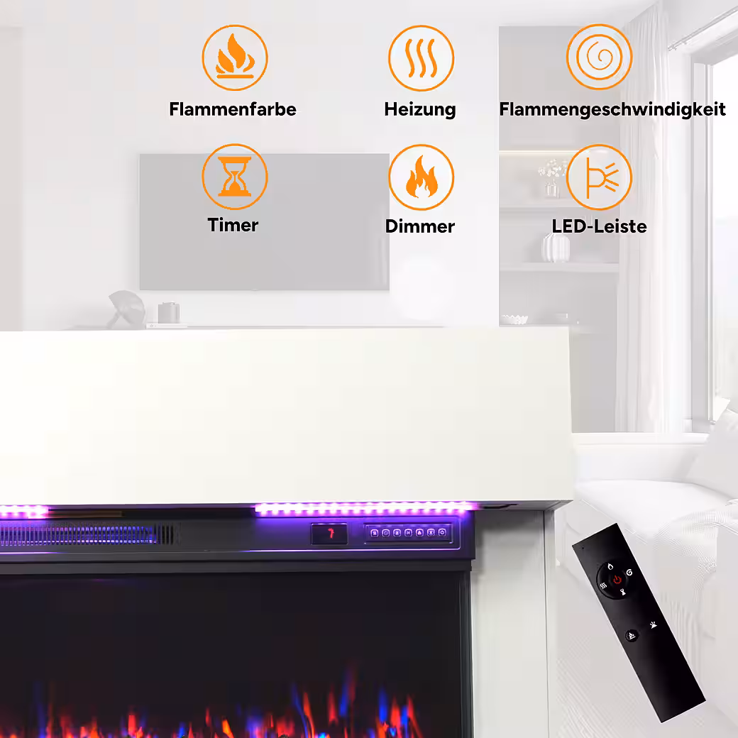 Dual-mode operation, convenient and versatile:Â Supports touch panel and infrared remote control. Easily adjust on/off, timer, flame color, flame effect, brightness, flame speed, and heating function. Intuitive interface with precise controls for everyday or nighttime use. Enjoy the benefits of intelligent control.