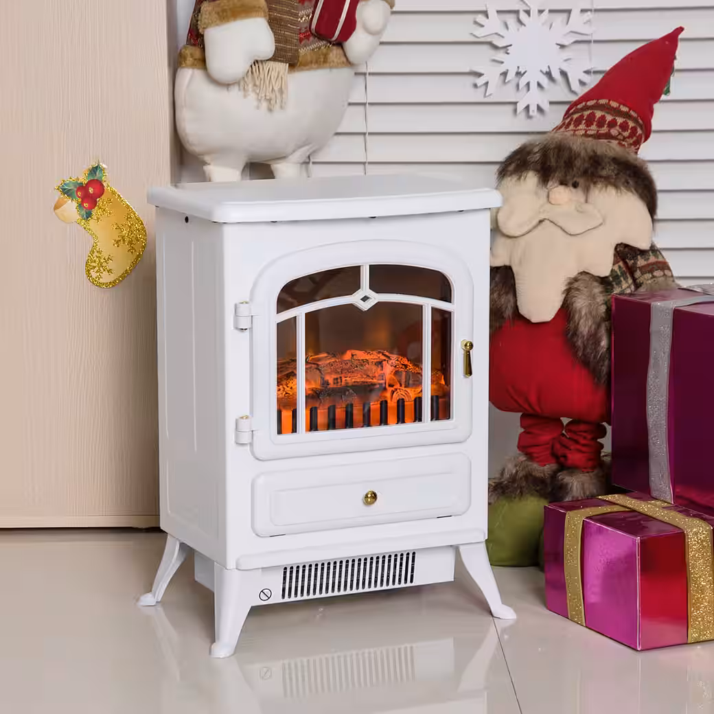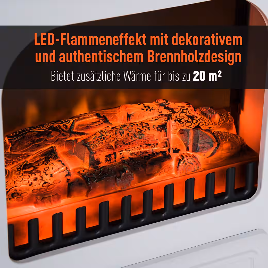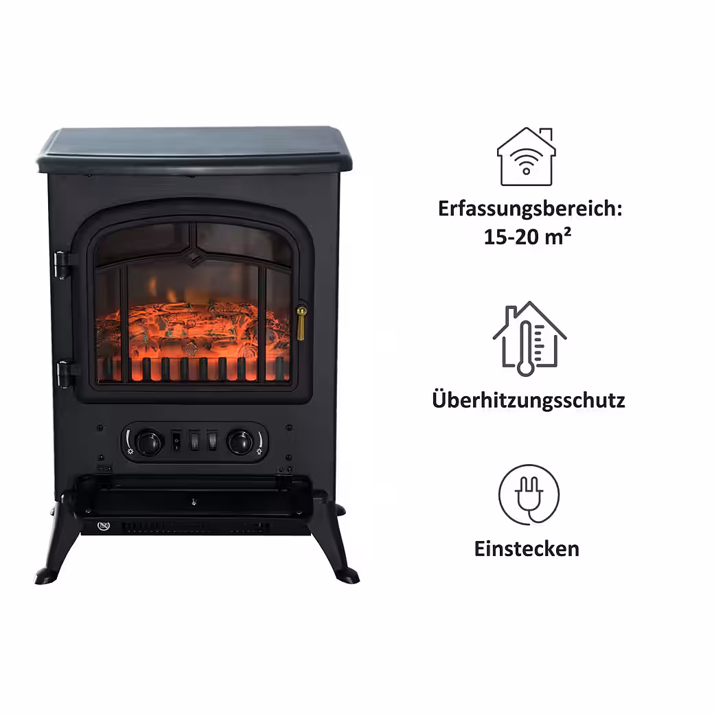 Cold outside, warm inside! The HOMCOM fireplace creates a cozy atmosphere. The stove is electronically operated, offering the major advantage of no bothersome smoke or dust. You decide whether to use only the heating function or let the incredibly realistic fire simulation bathe your living room in a romantic ambiance. The robust steel construction contributes to the fireplace’s authentic look. Thanks to the overheat protection, the stove automatically shuts off if it gets too hot.