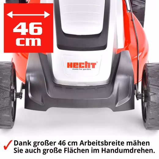 • 46 cm cutting width – Generous cutting width for fast mowing. Reaches even hard-to-reach areas around hedges and shrubs. Perfect for medium to large gardens.