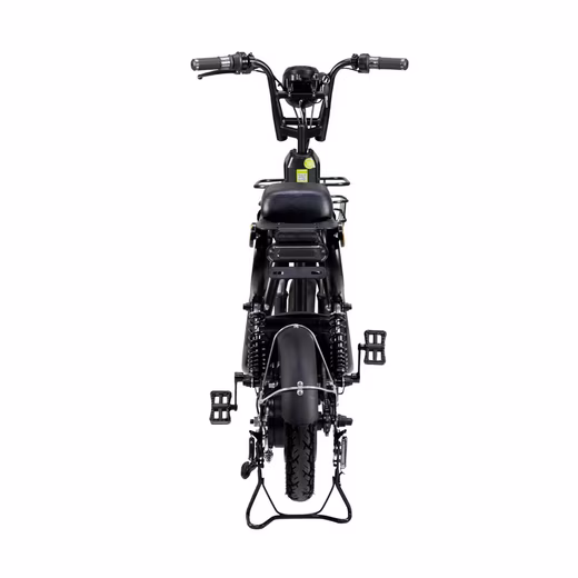 The 48V 14Ah lead-acid gel battery offers a range of up to 40 km and can be conveniently charged at any standard 230V household outlet. LED lighting ensures good visibility, while the front and rear drum brakes provide reliable stopping power. The sturdy handlebars, ergonomic seating position, and 1,110 mm wheelbase contribute to a comfortable and safe riding experience.