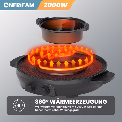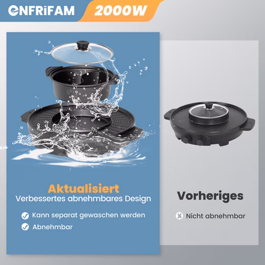 ENFRIFAM 2000W Electric Saucepan, 2-in-1 Saucepan and Grill